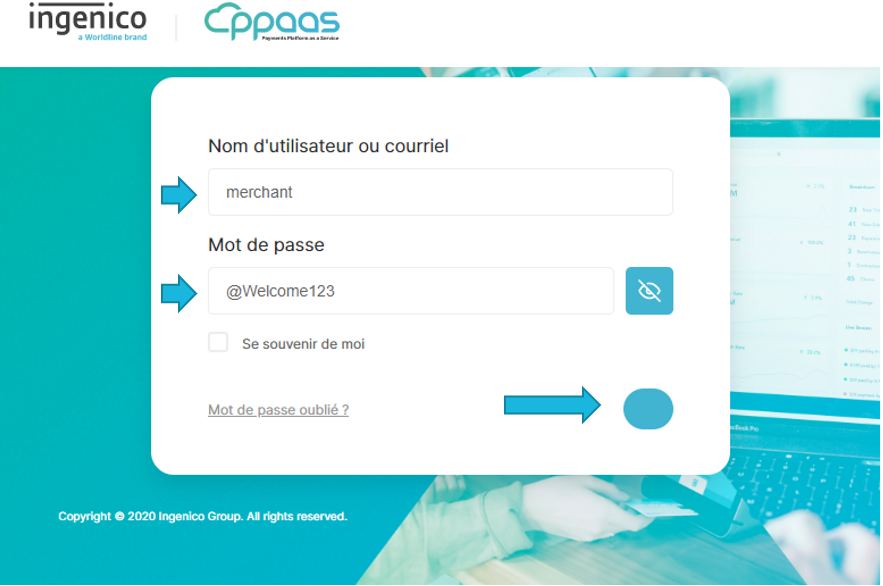 Fill the form with the following credentials: username: merchant